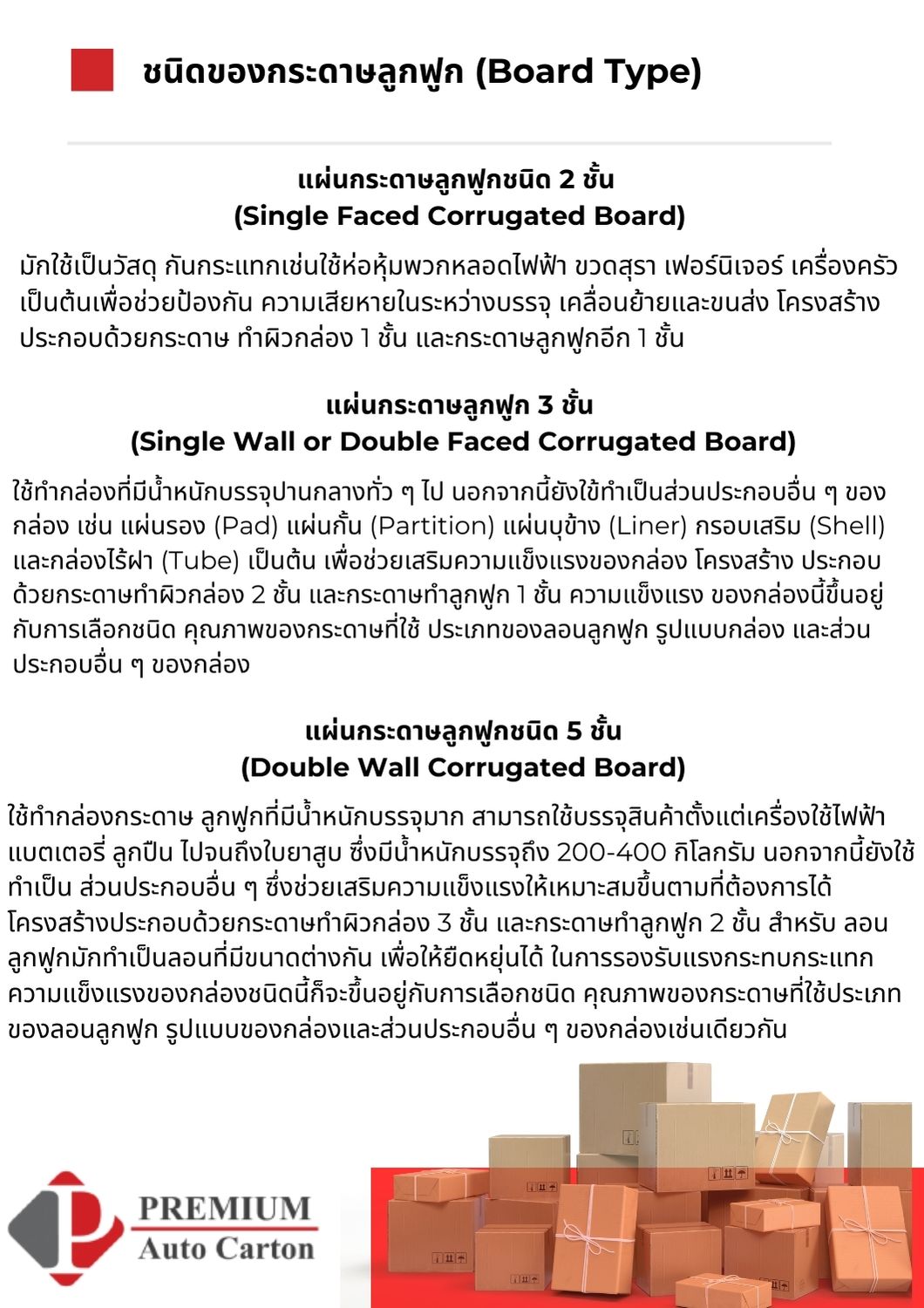 พรีเมี่ยมออโต้คาร์ตัน ออกแบบผลิตกล่องกระดาษลูกฟูก